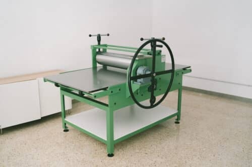 Este tórculo manual de alta precisión está diseñado para ofrecer resultados profesionales en grabado. Equipado con una platina HPL de 1000 x 2100 mm, permite realizar grabados de hasta 1000 x 1900 mm. Su sistema de accionamiento mediante volante manual asegura un control total sobre el proceso, mientras que la tracción al rodillo superior y la reducción 1:25 facilitan una operación suave y eficiente.